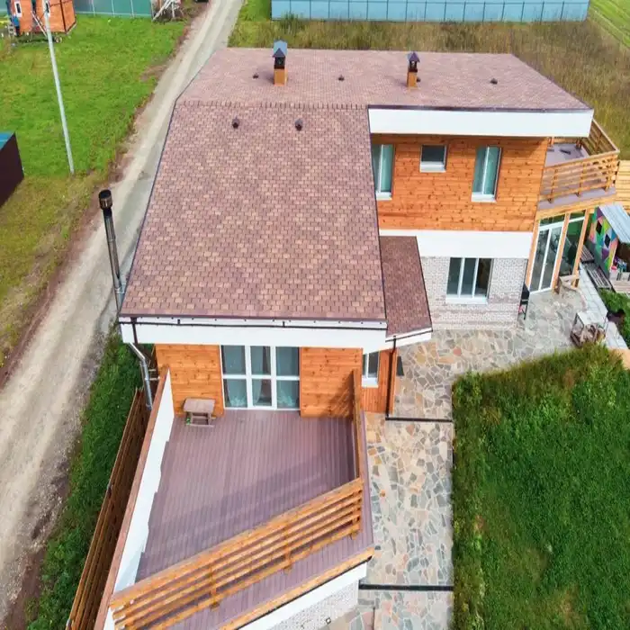 Гибкая черепица может применяться не только на малоэтажных жилых зданиях, но и при строительстве административных, жилых многоэтажных и других типов зданий.